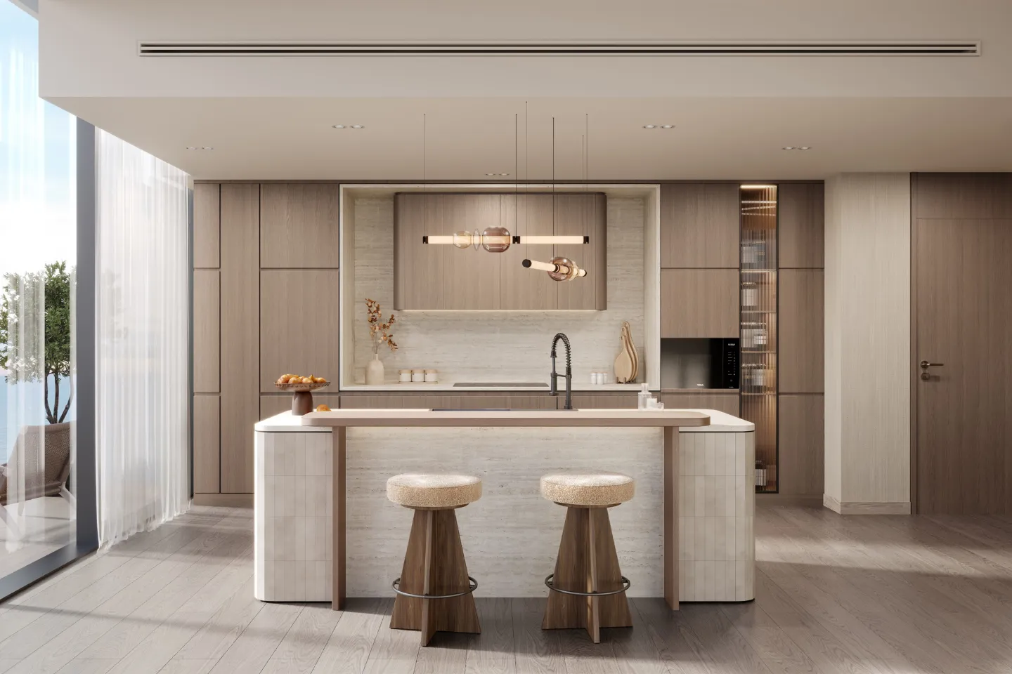 The development offers a range of residences, including signature units and penthouses, designed with floor-to-ceiling windows that capture breathtaking sea views. Modern interiors blend refined textures, bespoke finishes, and open-concept layouts, creating a sophisticated yet tranquil living space.