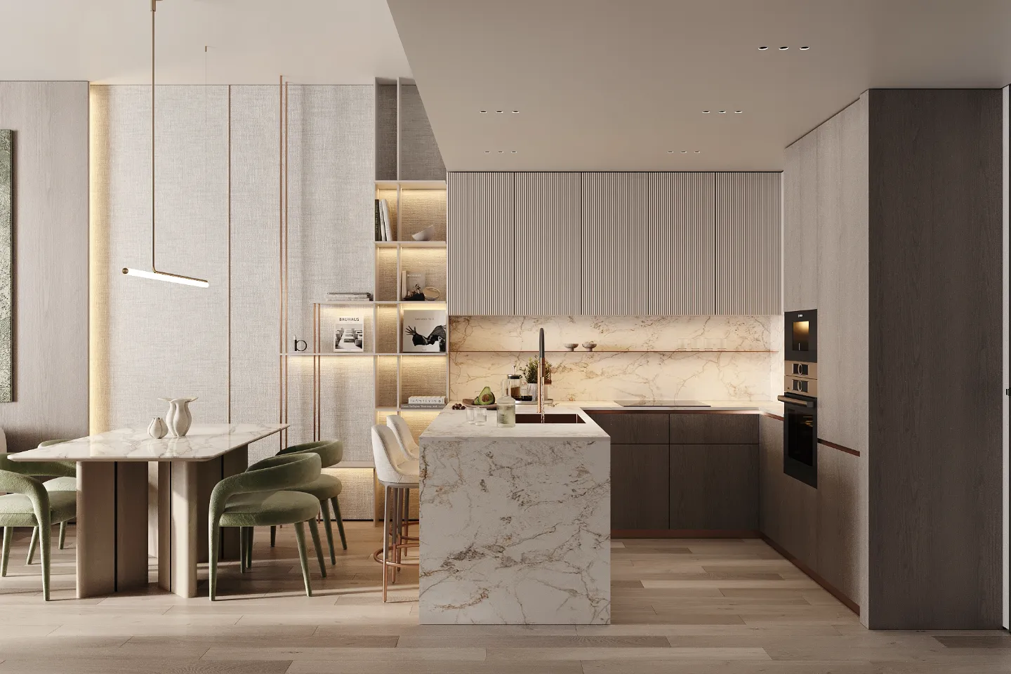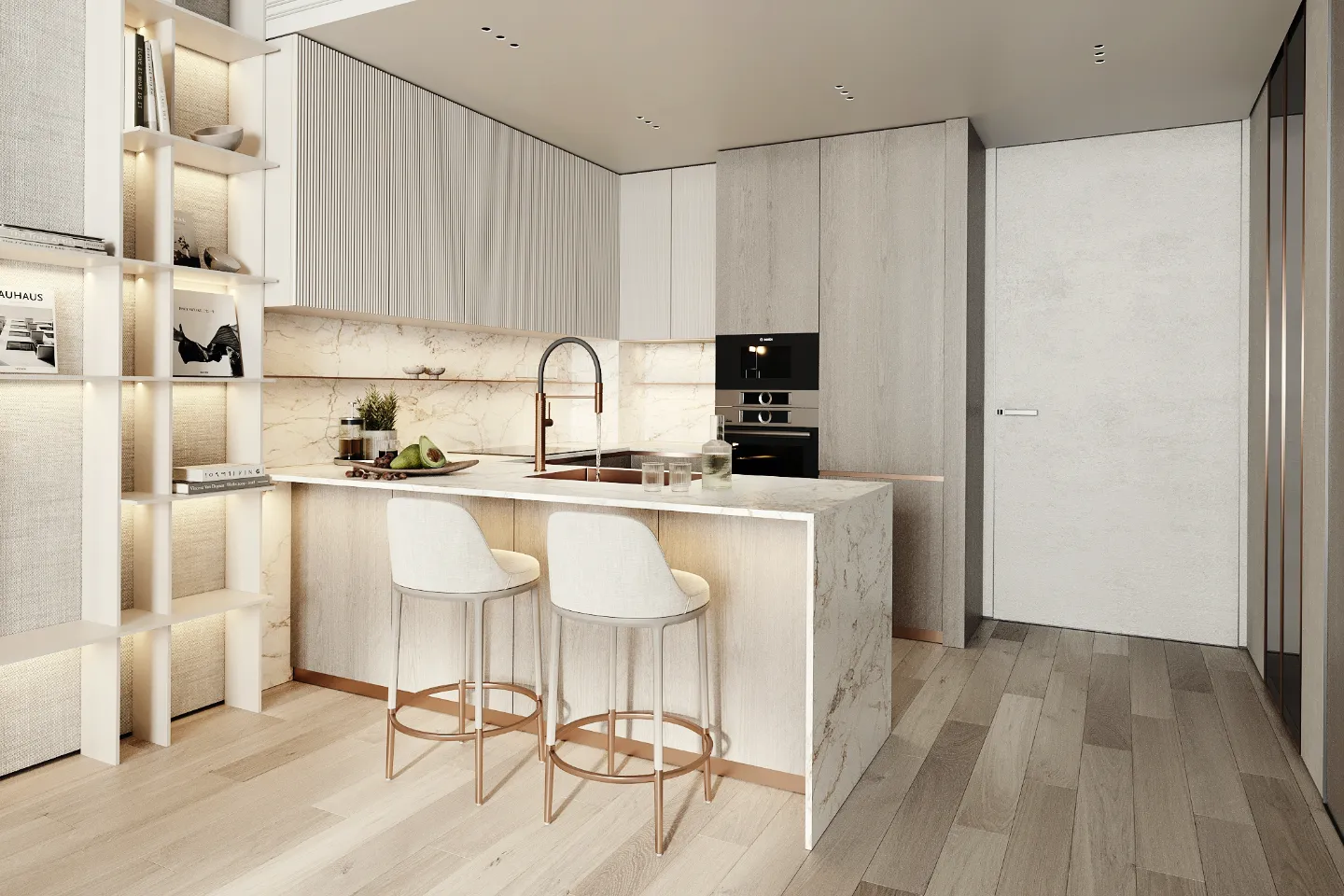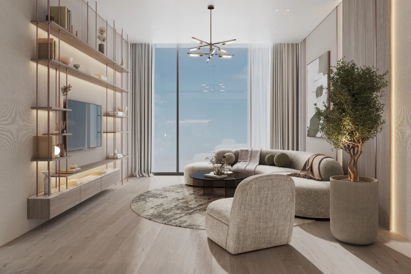 Cove Edition 5 by Imtiaz Developments is a stylish mid-rise residential building in Dubailand Residential Complex (DLRC). Rising 11 floors, it features 132 studios, 55 one-bedroom, and 11 two-bedroom fully furnished apartments. The residences are equipped with smart home systems by Teka, Alexa, and Vitra, and include private jacuzzis, balconies with greenery, and large windows offering natural light and community views.