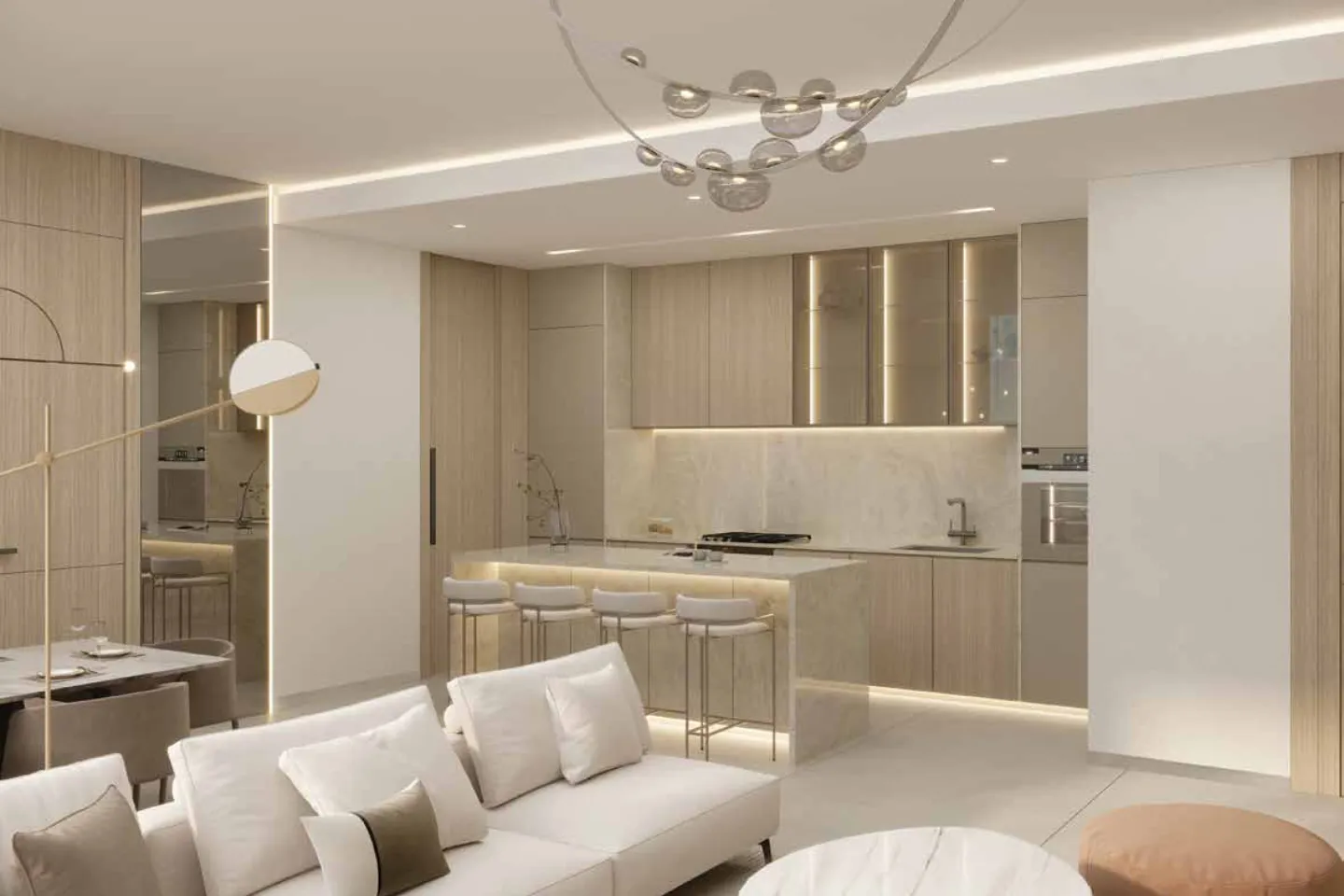 Gharbi I Residences at Arjan by Rabdan Developments offers luxurious studios, 1 & 2-bedroom apartments within a G+3P+12+2R configuration. Featuring 168 thoughtfully designed units, the residences blend urban sophistication with nature-inspired aesthetics. Highlights include open layouts, natural light-filled interiors, European kitchens, and private pools on select balconies. Residents enjoy premium amenities such as a rooftop cinema, swimming pools, yoga space, gym, and more, creating a lifestyle of comfort and leisure.