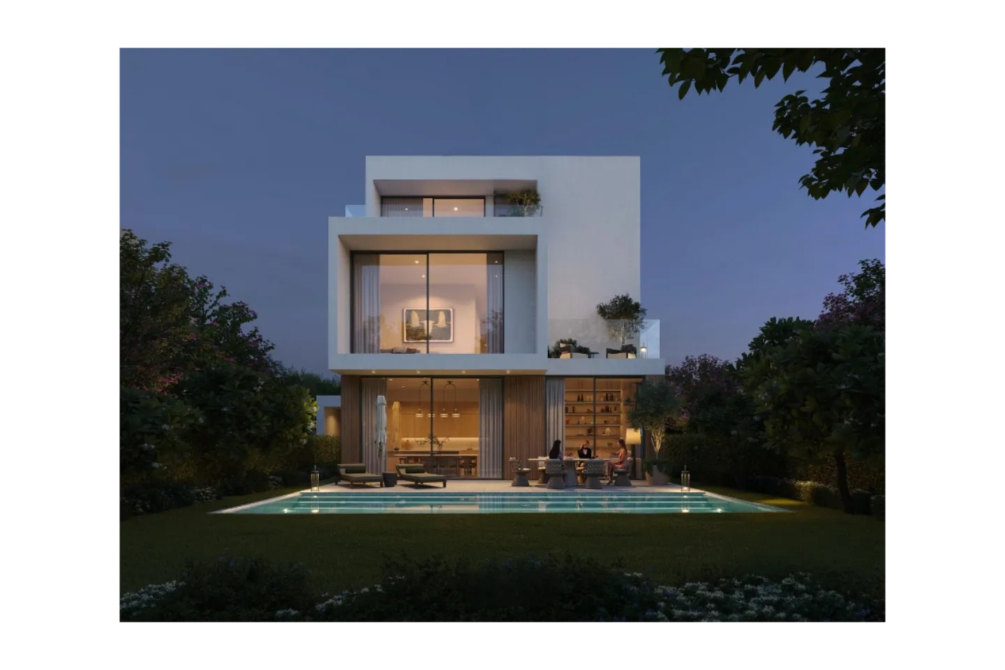 The development features elegantly designed 1, 2, and 3-bedroom apartments, each thoughtfully crafted with premium finishes, floor-to-ceiling windows, and smart home features. Residents enjoy resort-style living with tranquil lagoons, an elegant clubhouse, infinity pools, wellness spaces, paddle tennis courts, and family-friendly outdoor zones.