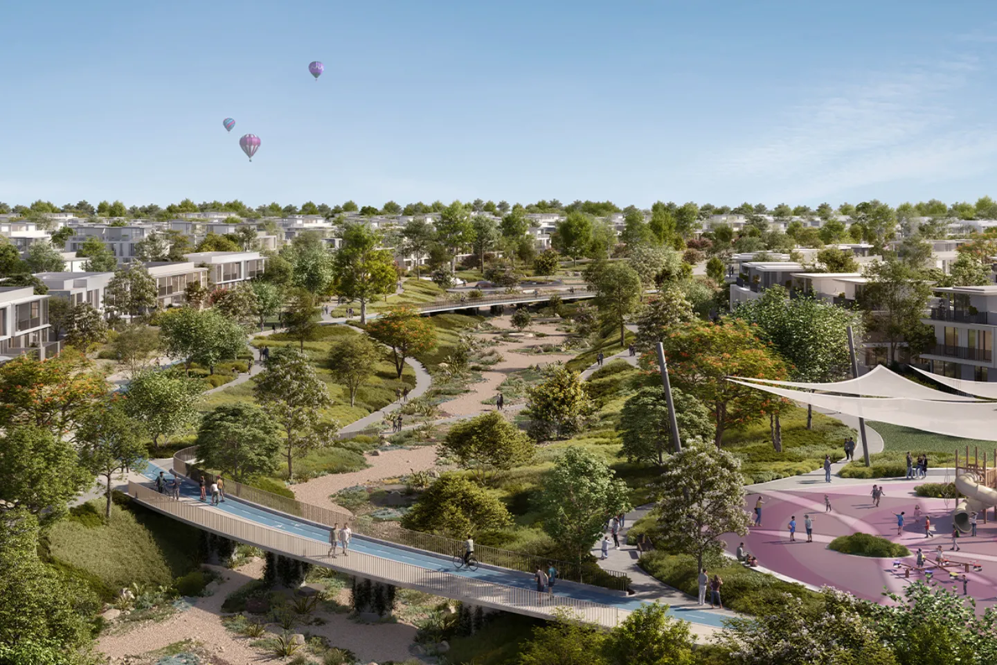 Rivera at The Valley Phase 2 is Emaar’s newest eco-conscious community, where sustainability and nature intertwine. As the first LEED-certified neighborhood in The Valley, Rivera redefines green living with 4-bedroom townhouses nestled among vibrant gardens, flower farms, and orchard groves. Meandering trails lead through a landscape designed to inspire connection—with nature and with neighbors.