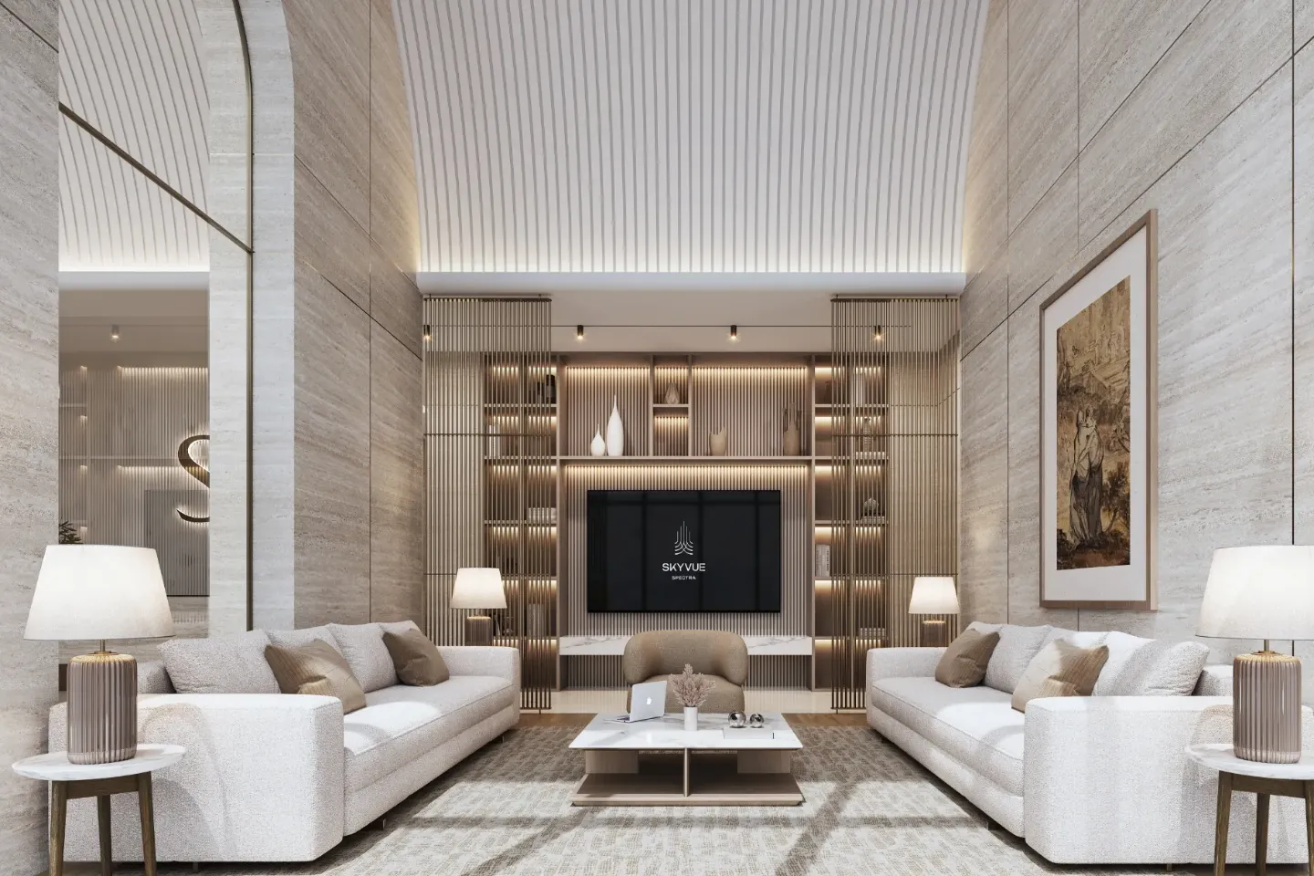 Residents enjoy a range of high-end amenities including a wellness center with spa and saunas, kids’ play areas, private screening rooms, co-working spaces, and 24/7 concierge and valet services. With a prime location and refined living spaces, Skyvue Stellar redefines upscale urban living in Dubai.