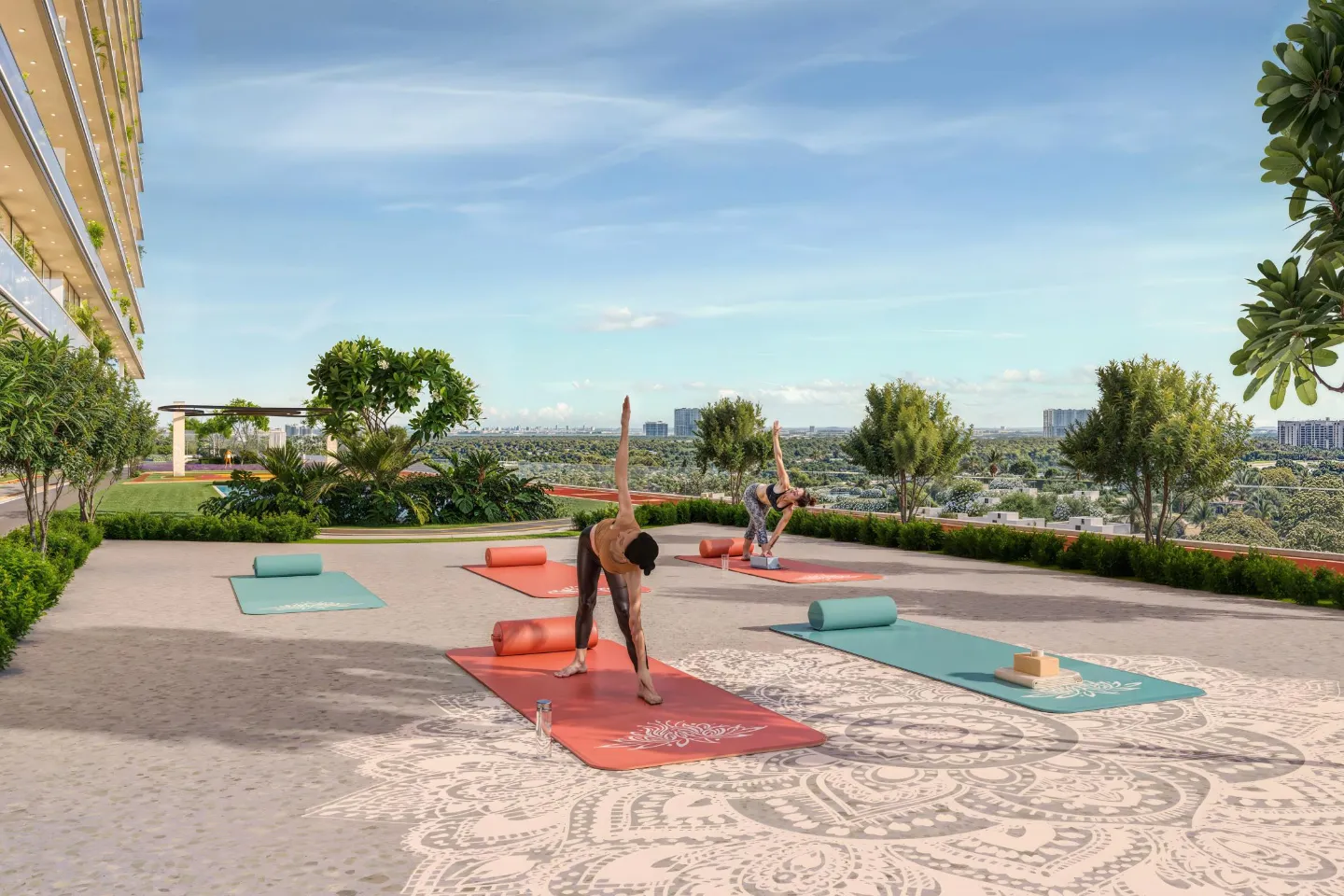 Amenities include an infinity pool, aquatic gym, open-air fitness zones, sports courts, and a yoga deck. Families benefit from kids' play areas and the Sparkle Garden—a sensory haven with floral displays and an outdoor cinema.